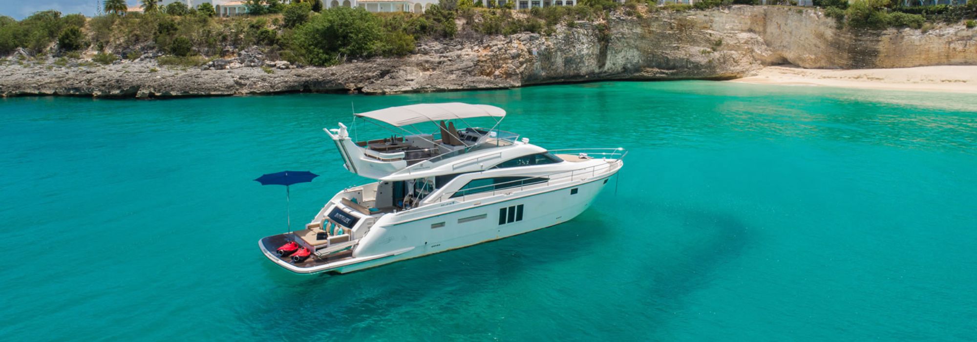 The fly-bridge on this yacht is so cleverly designed that can comfortably fit 12 guests around its table for catered lunch accompanied with chilled French Champagne and Cote de Provance Rose. Custom bimini provides a full shade protecting you from the hot Caribbean sun while enjoying lunch.